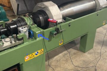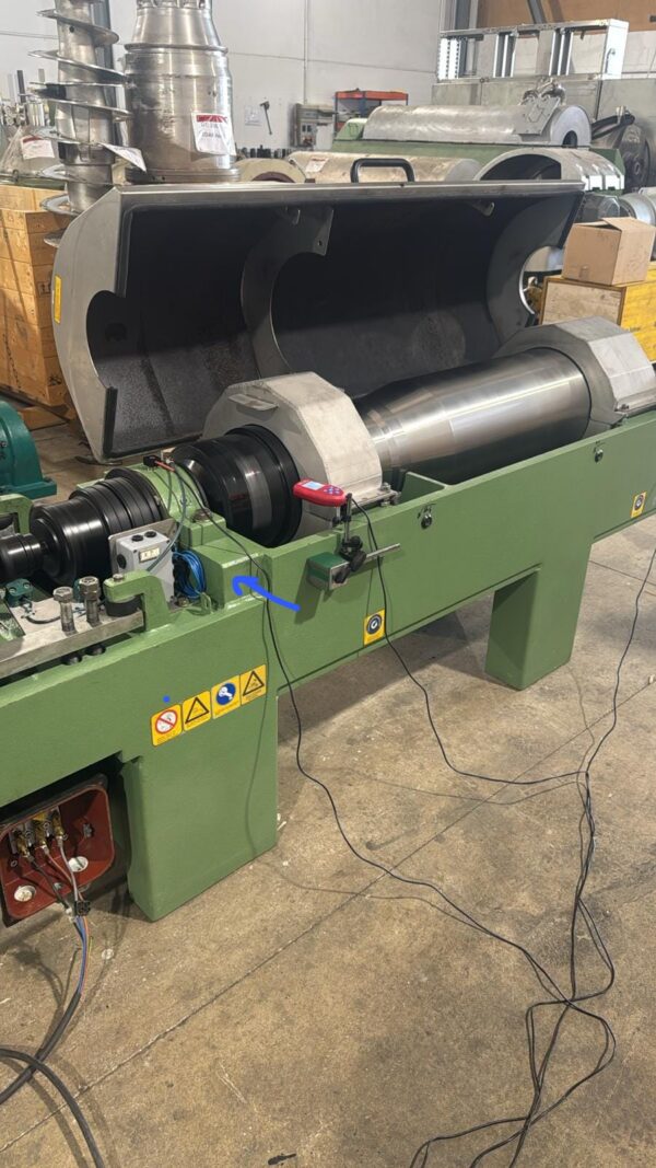 Настройка за динамично балансиране на декантерна центрофуга с Balanset-1A при 4500 об/мин