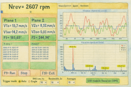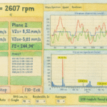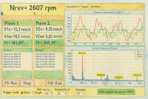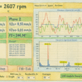 Analiza vibracij v dveh ravninah pri 2607 vrt/min s frekvenčnim spektrom in faznimi podatki