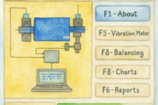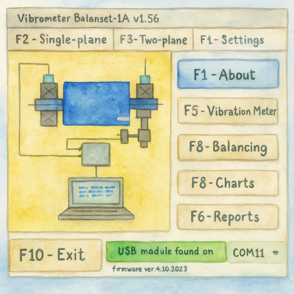 Vibrometer Balanset-1A-gränssnitt: Digitalt balanseringssystem med dubbelplansanalys