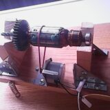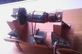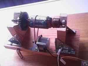 DIY روٹر بیلنسنگ اسٹینڈ جو لکڑی اور دھاتی بریکٹ سے بنایا گیا ہے، جس میں V-بلاکس پر نصب ایک چھوٹا سا روٹر، گردش کے لیے ایک سٹیپر موٹر، اور بنیادی اسپرنگ ڈیمپنگ - تعلیمی یا تجرباتی وائبریشن بیلنسنگ کے لیے ایک سادہ سیٹ اپ کی وضاحت کرتا ہے۔